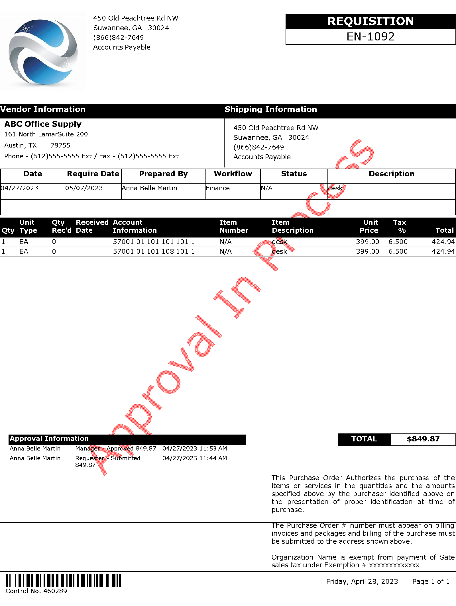 We recommend using the default PO form which includes most of the information related to a standard requisition/PO form. However, if you need modifications, it can be considered but we cannot guarantee it will look the same as your old form. We can add to our existing forms if the data is available in Microix. If it is not available in Microix, a text box can be added to the form for customer to manually enter after the form Is printed. A minimum fee of $1,500 for custom form change can be added to the engagement.