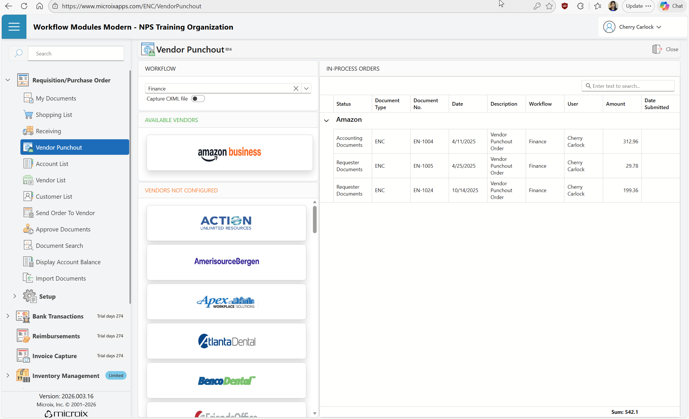 The Vendor Punchout Catalog is an optional add-on feature that enables seamless integration between Microix and supplier web-based catalogs using the cXML standard. It streamlines procurement from browsing to purchase order creation within a controlled workflow.